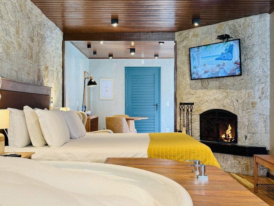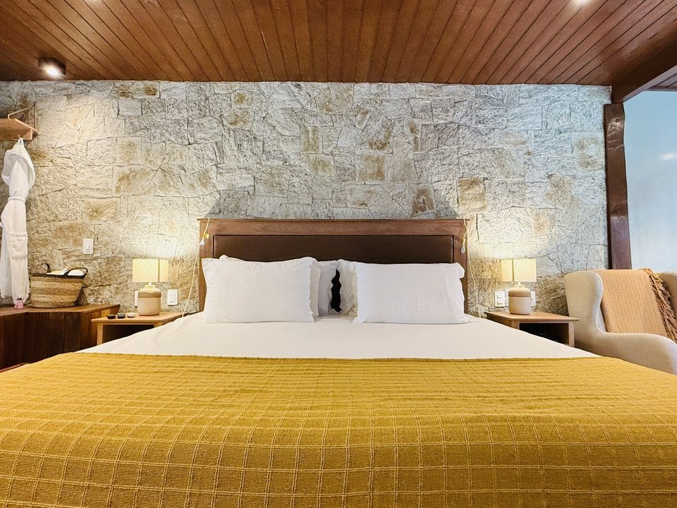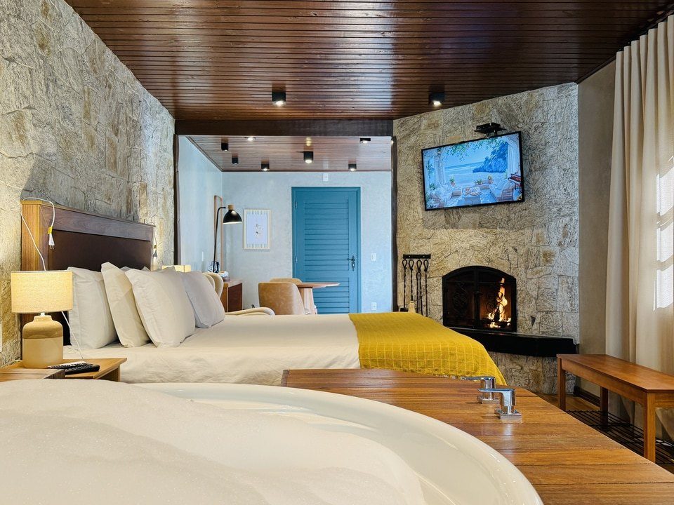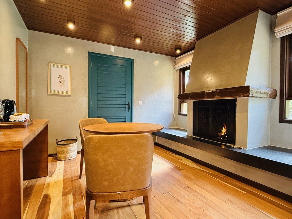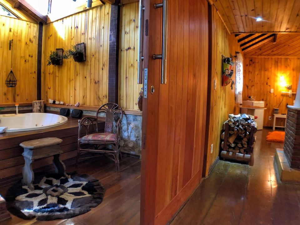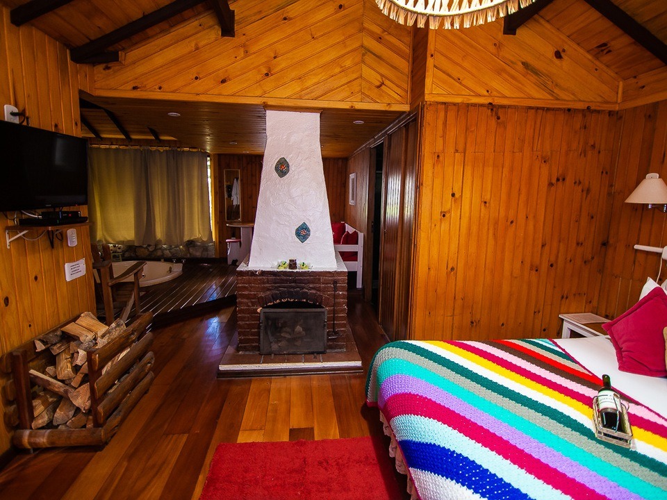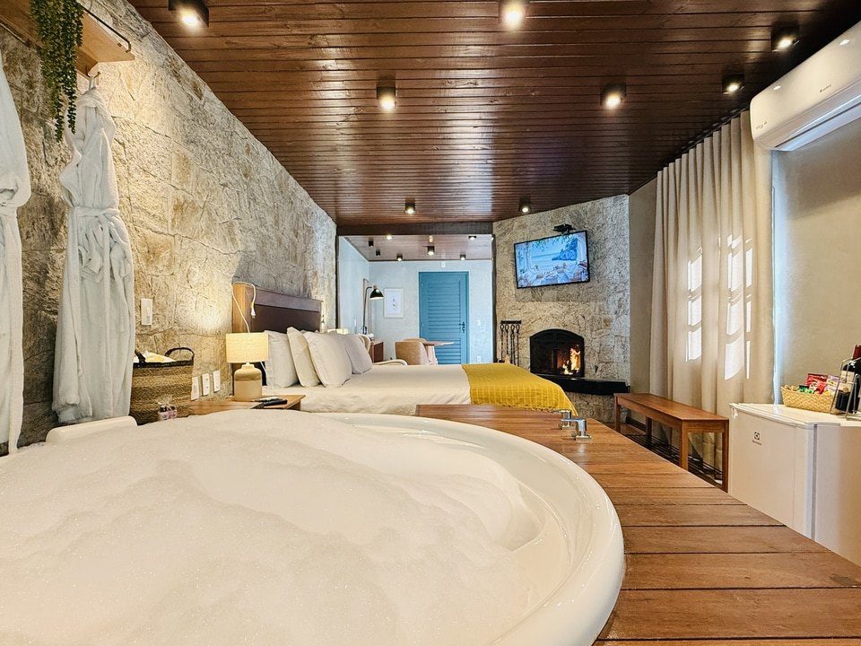 A Cabana Rifugio com hidromassagem é um retiro sereno, a maior (62m²) e mais isolada das Cabanas, onde o rústico encontra o luxo. O ambiente acolhedor é acentuado por tons de madeira natural e pedra, criando uma conexão harmoniosa com a natureza ao redor. A espaçosa hidromassagem oferece uma experiência relaxante, enquanto a grande janela proporciona vistas deslumbrantes para o exterior. Detalhes artesanais e uma lareira acolhedora, criam uma atmosfera calorosa e acolhedora. Esta cabana proporciona uma fuga íntima e indulgente, ideal para quem busca tranquilidade e conforto.