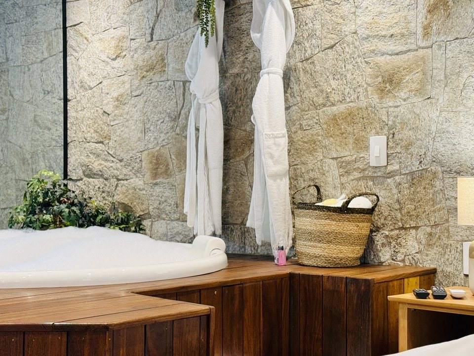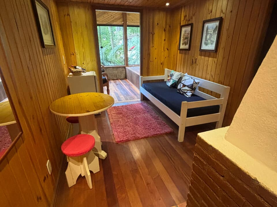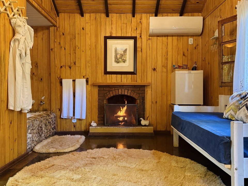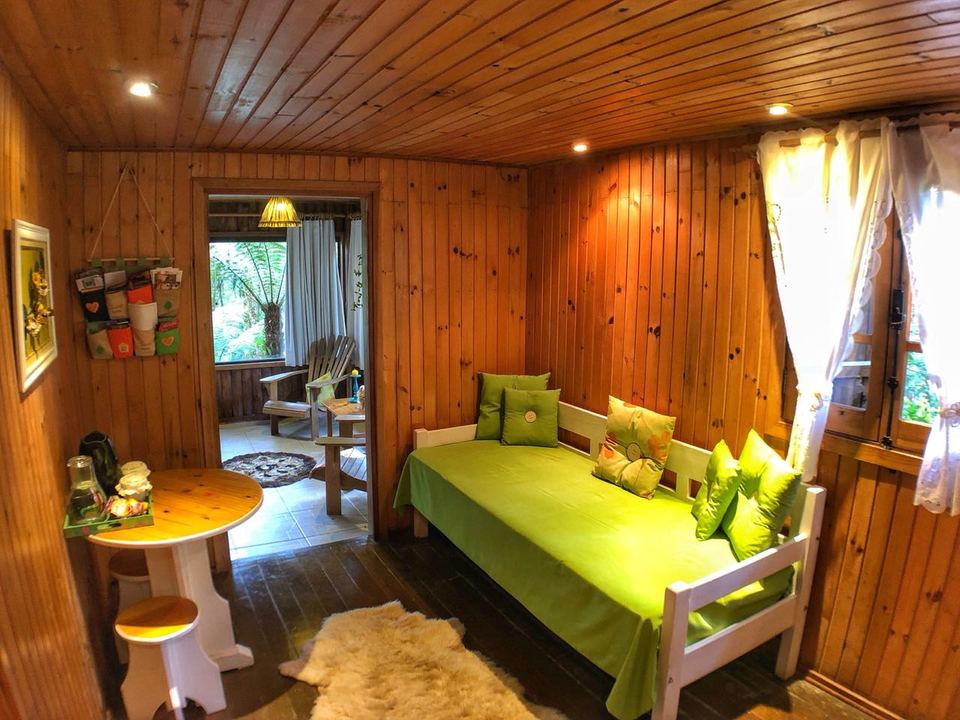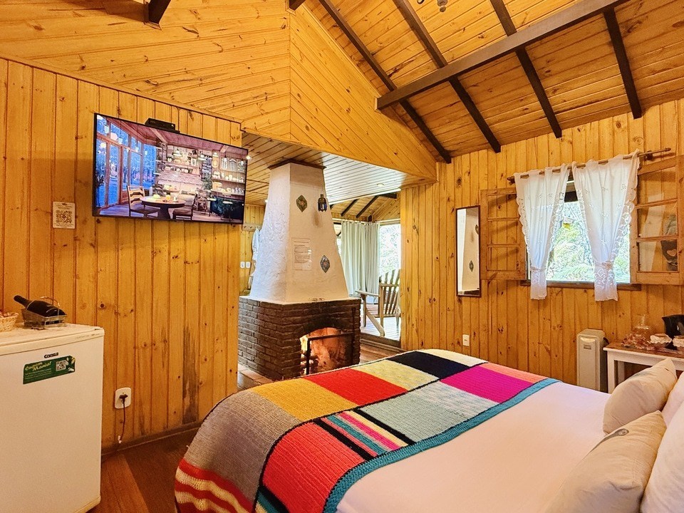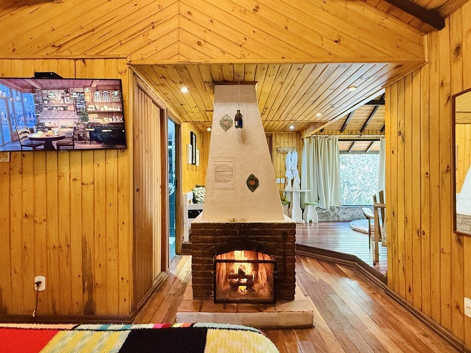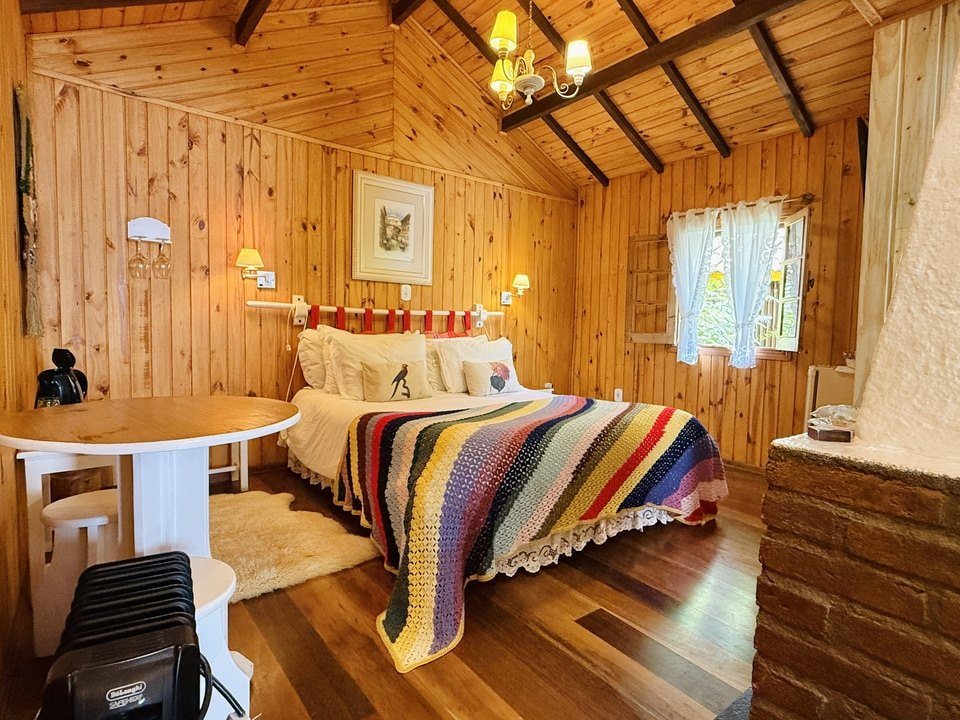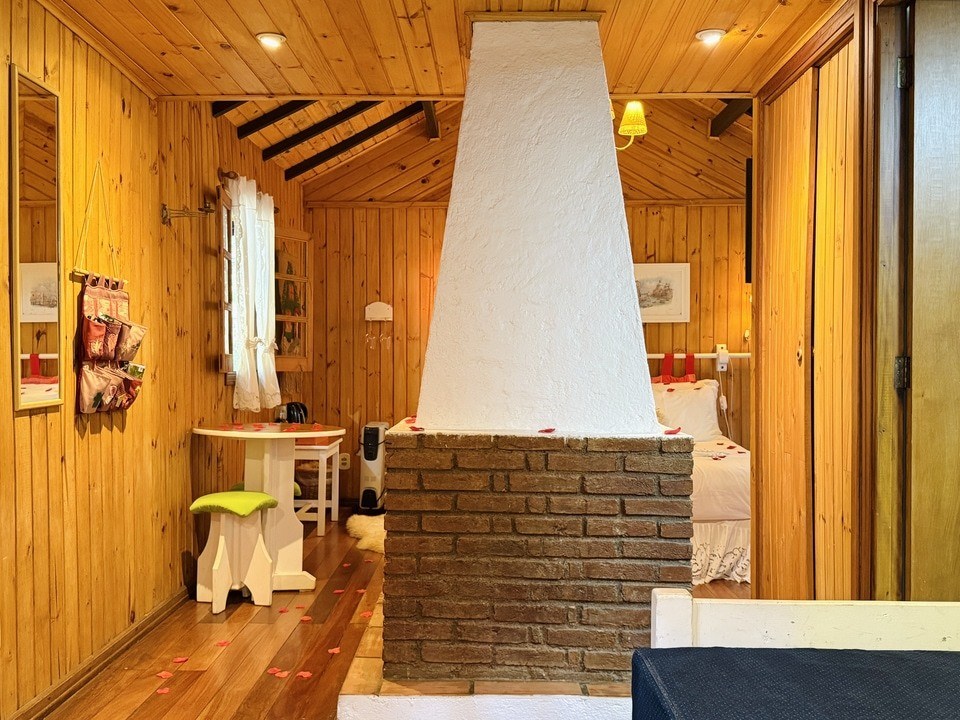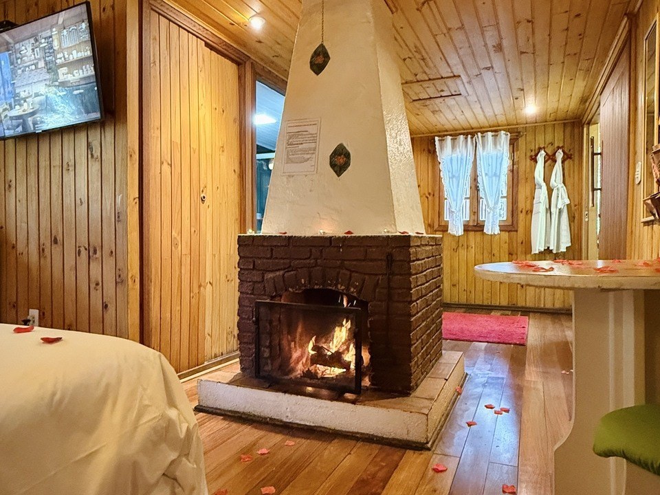 Cabana Bacio — um refúgio de 50m² onde cada momento é um convite ao afeto. Relaxe na hidro com vista para o riacho e o bosque, enquanto o sussurrar da natureza embala seus encontros mais apaixonados. Um lugar para viver o amor em sua forma mais pura. ❤️