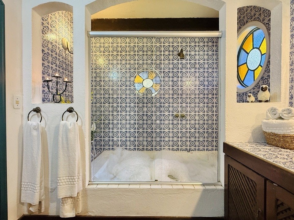 A Suíte Brillante possui 54m² . Para casais que apreciam um estilo refinado com ricos detalhes todos em estilo colonial com azulejos portugueses.