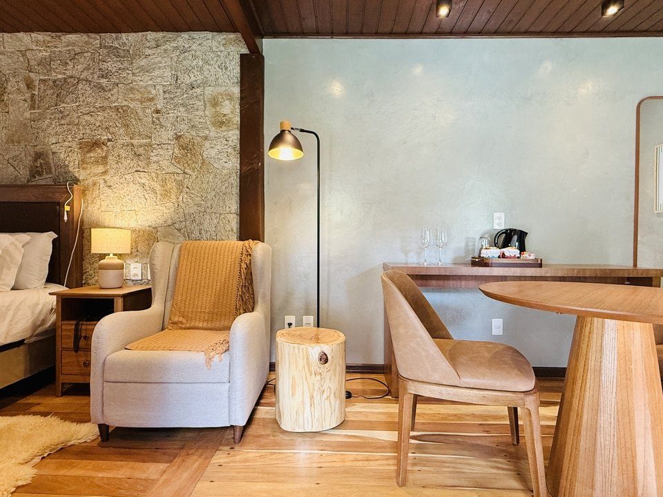 A Suíte Sussuro fica dentro da sede, uma ótima opção para casais que apreciam um estilo mais clássico e refinado.