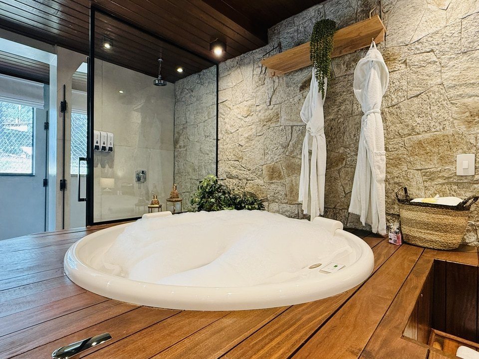 Cabana Armonia — um refúgio de 58m² onde o equilíbrio entre natureza e conforto cria a perfeita sintonia. Relaxe na hidro com vista para o bosque, sinta a brisa na varanda enquanto descansa na rede e deixe a harmonia do lugar renovar seu corpo e alma. Um convite para momentos de paz e conexão em meio ao verde. 💚